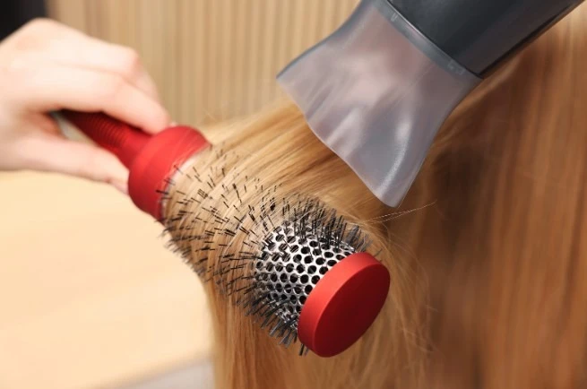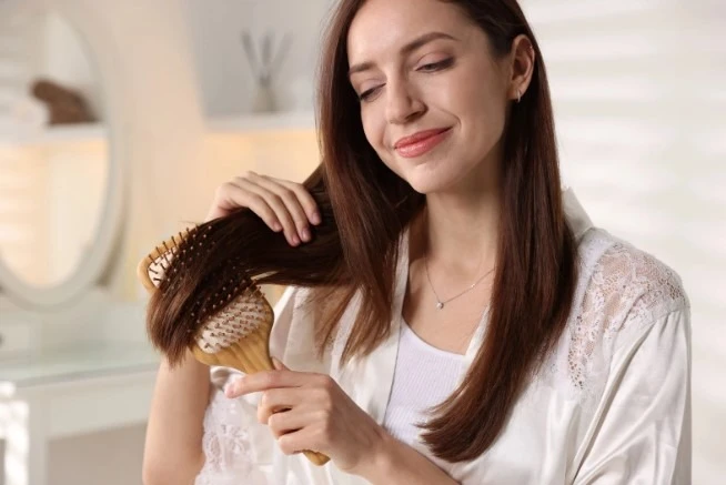 - Brush your hair thoroughly with a looped-bristle extension brush, starting from the tips and working up.